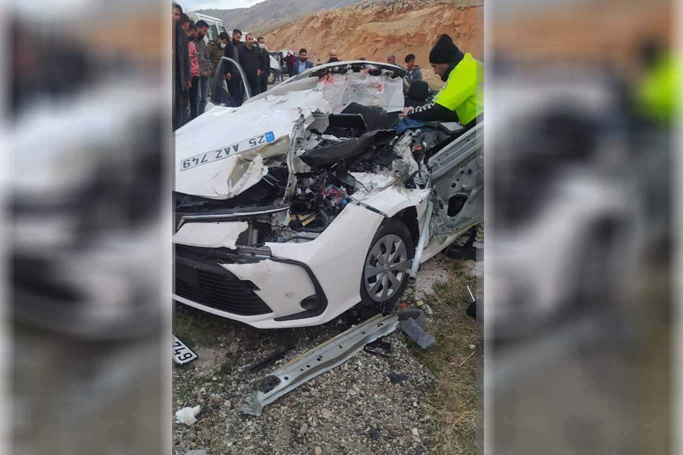 Edinilen bilgilere göre 25 AAZ 749 plakalı otomobil, sürücüsünün direksiyon hakimiyetini kaybetmesi üzerine karşı yönden gelen 06 GB 8522 plakalı kamyonetle çarpıştı.