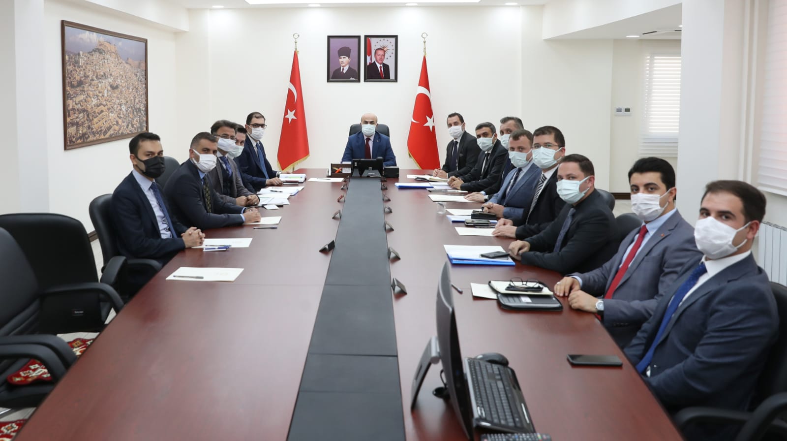 Vali Demirtaş konuşmasının hemen ardından ilgili Vali Yardımcıları ve İlçe Kaymakamları ile bir toplantı düzenledi. Vali Demirtaş toplantıda projenin tüm ayrıntılarını masaya yatırarak detaylı bilgi aldı.