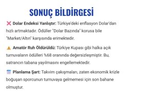 Bu sonuçlara göre de algı yaratmaya çalışan matematik bilgisinden yoksun sevgili Teknik Kurul Başkanımıza gerçek değerler ile algı yaratmamasını tavsiye ederiz.