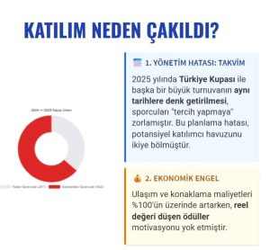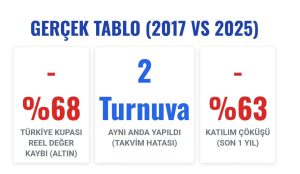 Böylece Süper ligden sonra Türkiye şampiyonasında da ortalığı karıştırıp elinize yüzünüze bulaştırdığınız için sizleri tebrik ederim. Özellikle Teknik Kurul Başkanının yetersiz yetenekleri ile ziyan olan iki turnuva içinde birde görevli olduğu turnuva sırasında paylaşım yaparak da zamanında 6 ay bu konudan disiplin cezası almış birinin bu toplara girmesi de manidardır.